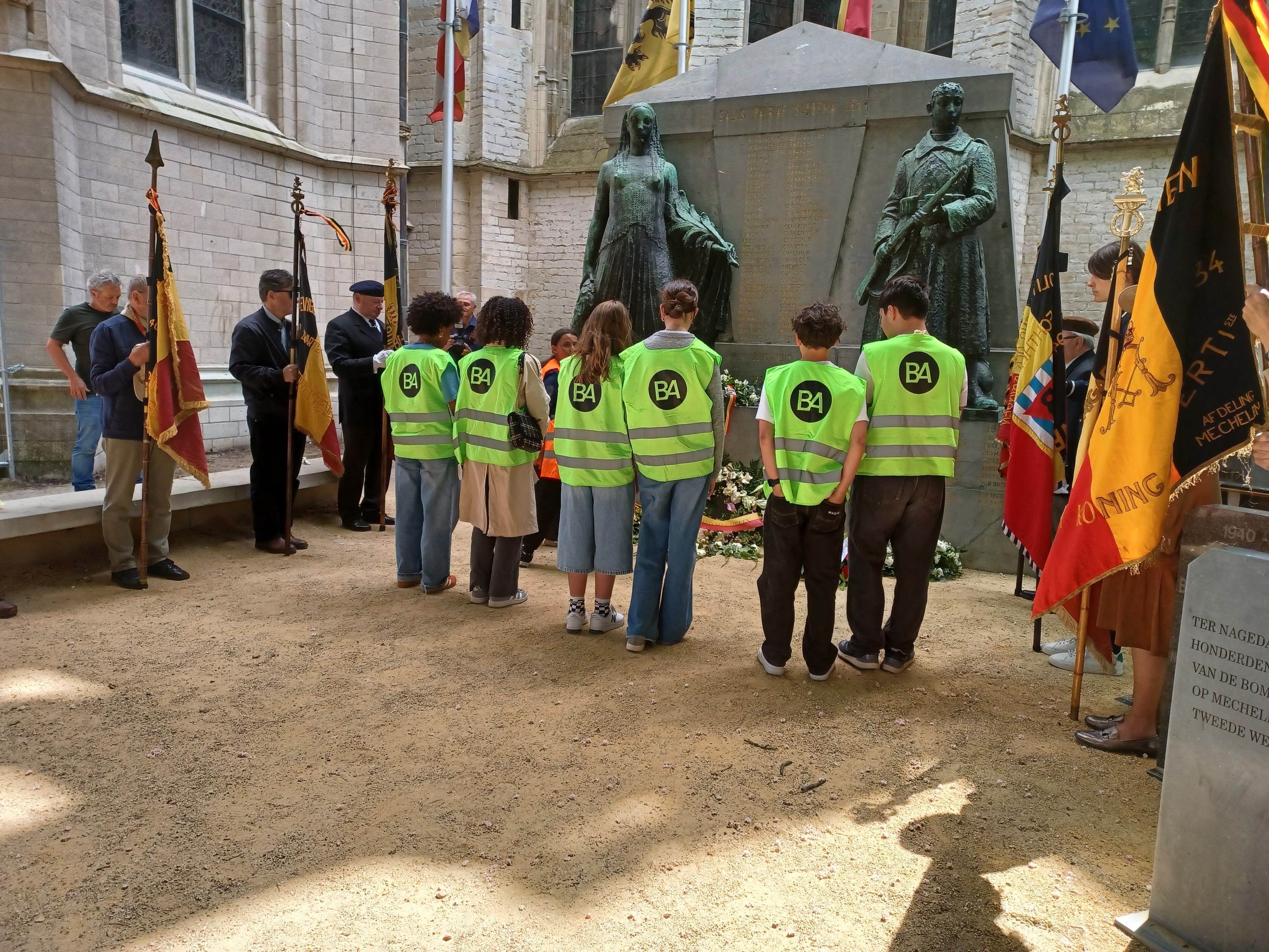Een zestigtal leerlingen van de verschillende BA-campussen namen deel aan de herdenking van het einde van de Tweede Wereldoorlog op 8 mei. Ze legden bloemen neer bij de monumenten op de Van Benedenlaan en het Sint-Romboutskerkhof en woonden de vlaggenceremonie op de Grote Markt bij. Zo werd herinneringseducatie voor onze leerlingen een heel tastbaar gegeven.