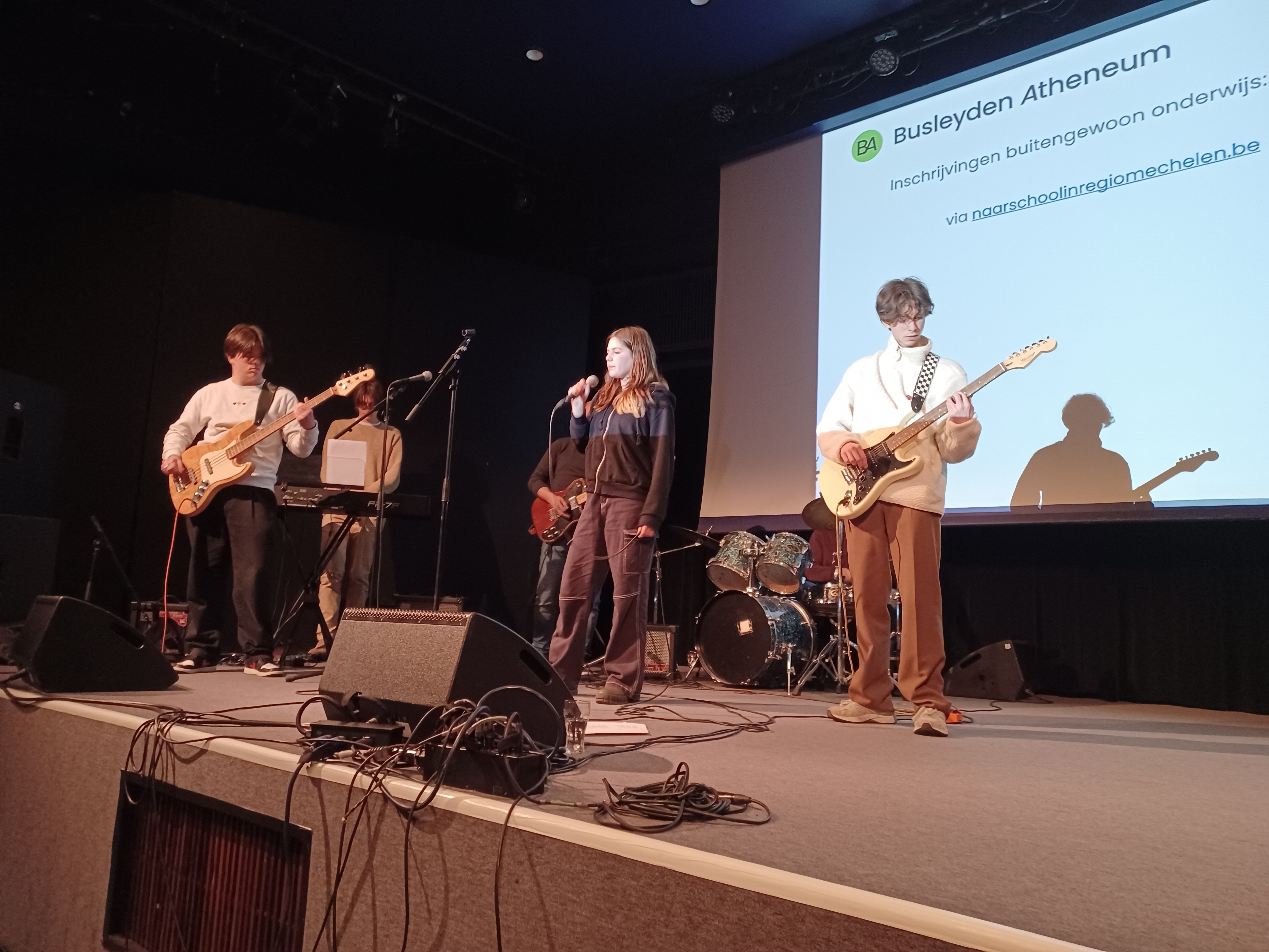 260 gezinnen bezochten de BA Ouderinfoavond in Cultuurcentrum Mechelen. De infosessies in het auditorium werden opgeluisterd door de BA-band. Daarna konden de bezoekers terecht in de grote zaal, waar leerkrachten, leerlingen en directies van elke BA-campus hen individueel te woord stonden. Bij een natje en een droogje, uiteraard. En nu maar hopen dat alle aanwezigen bewust voor een BA-campus kiezen!